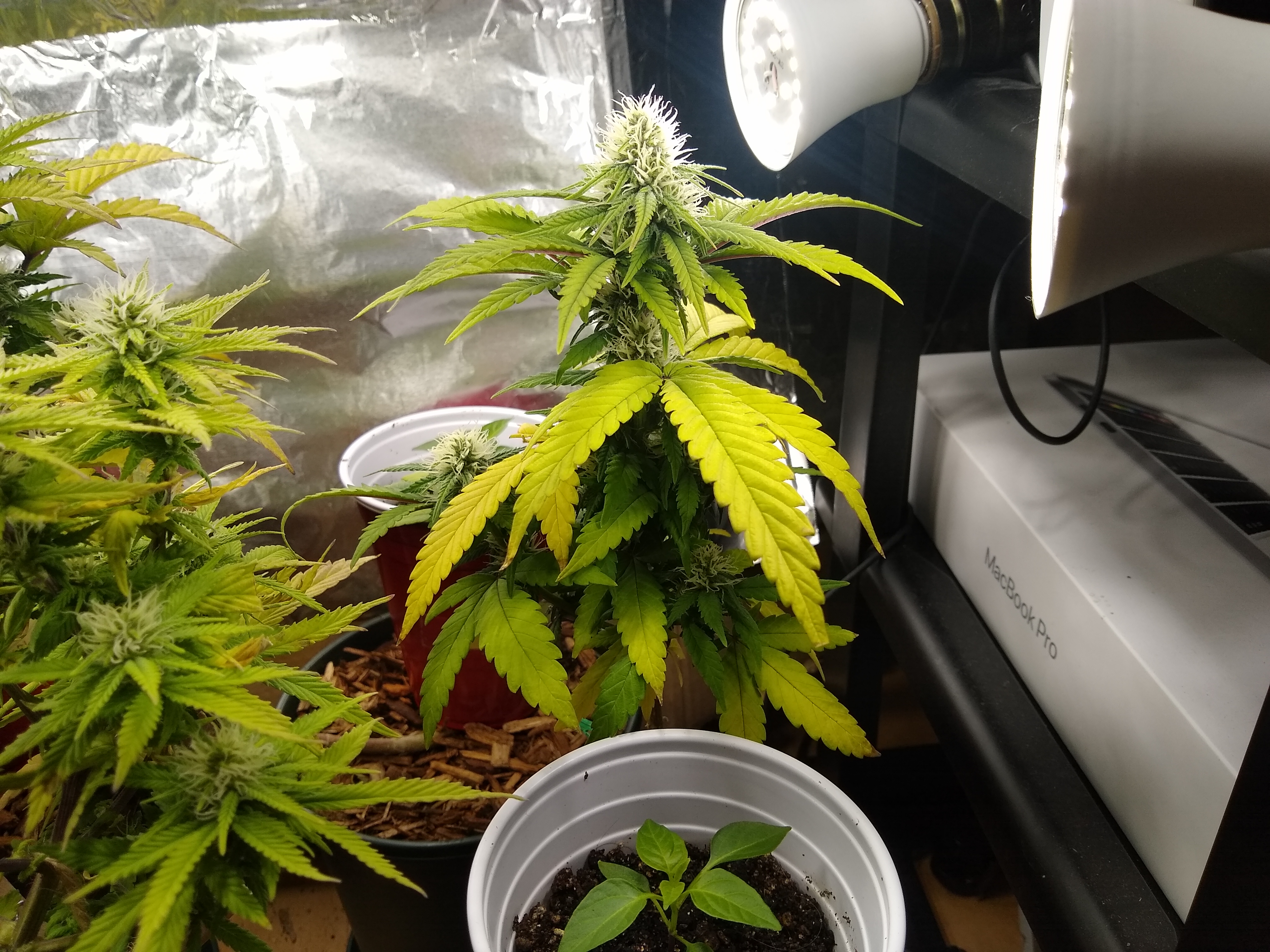 I can't show you what ready-to-harvest weed looks like, because around when that picture was taken, the plants began to ail. It's natural for cannabis to shed leaves and show autumn colors towards the end of their flowering period, but these plants were aging too soon, and without having put on any weight of flower.