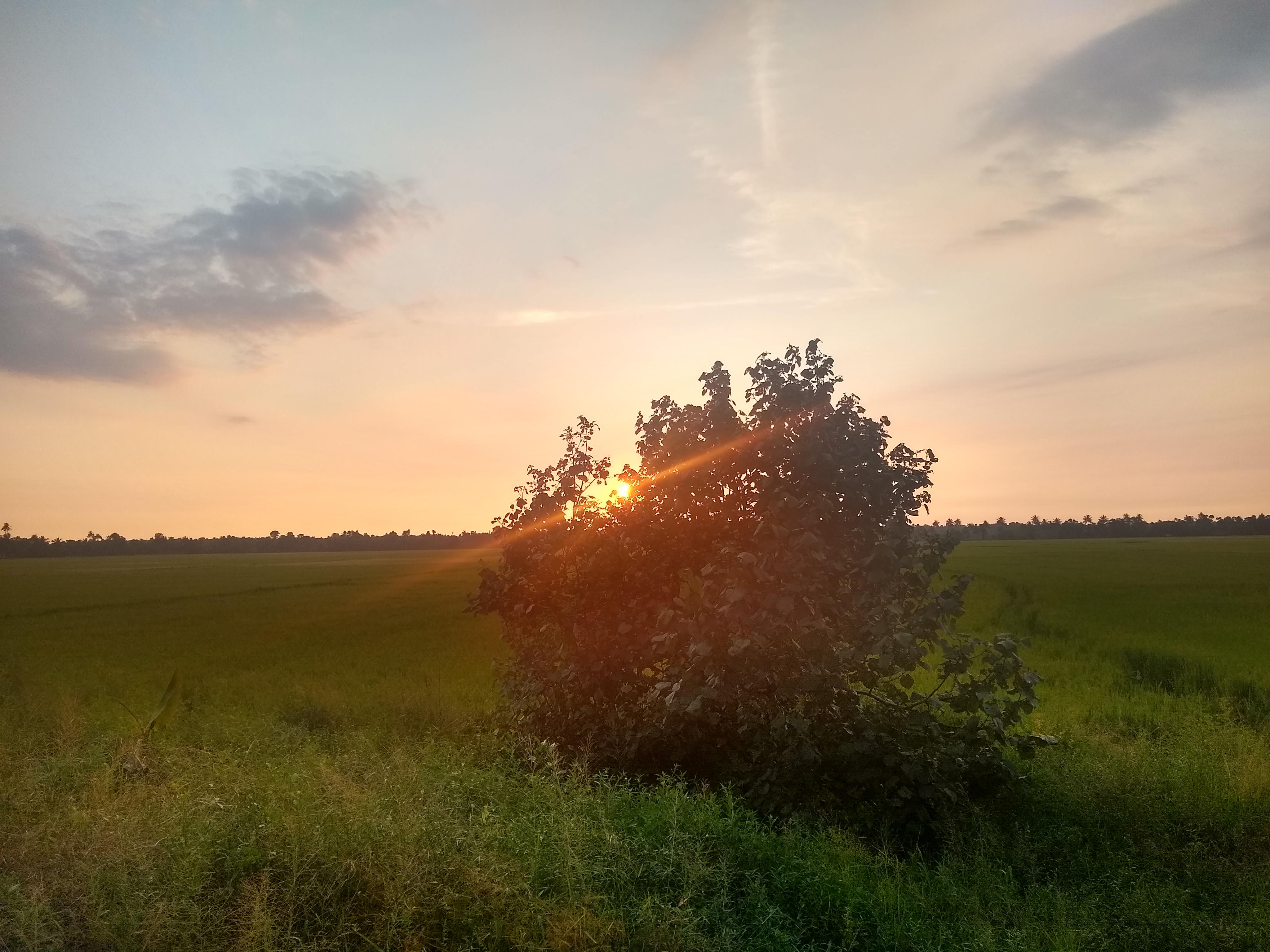 Before dinner, we stopped at the shore of the river to take a walk and see the sunset across a rice field.