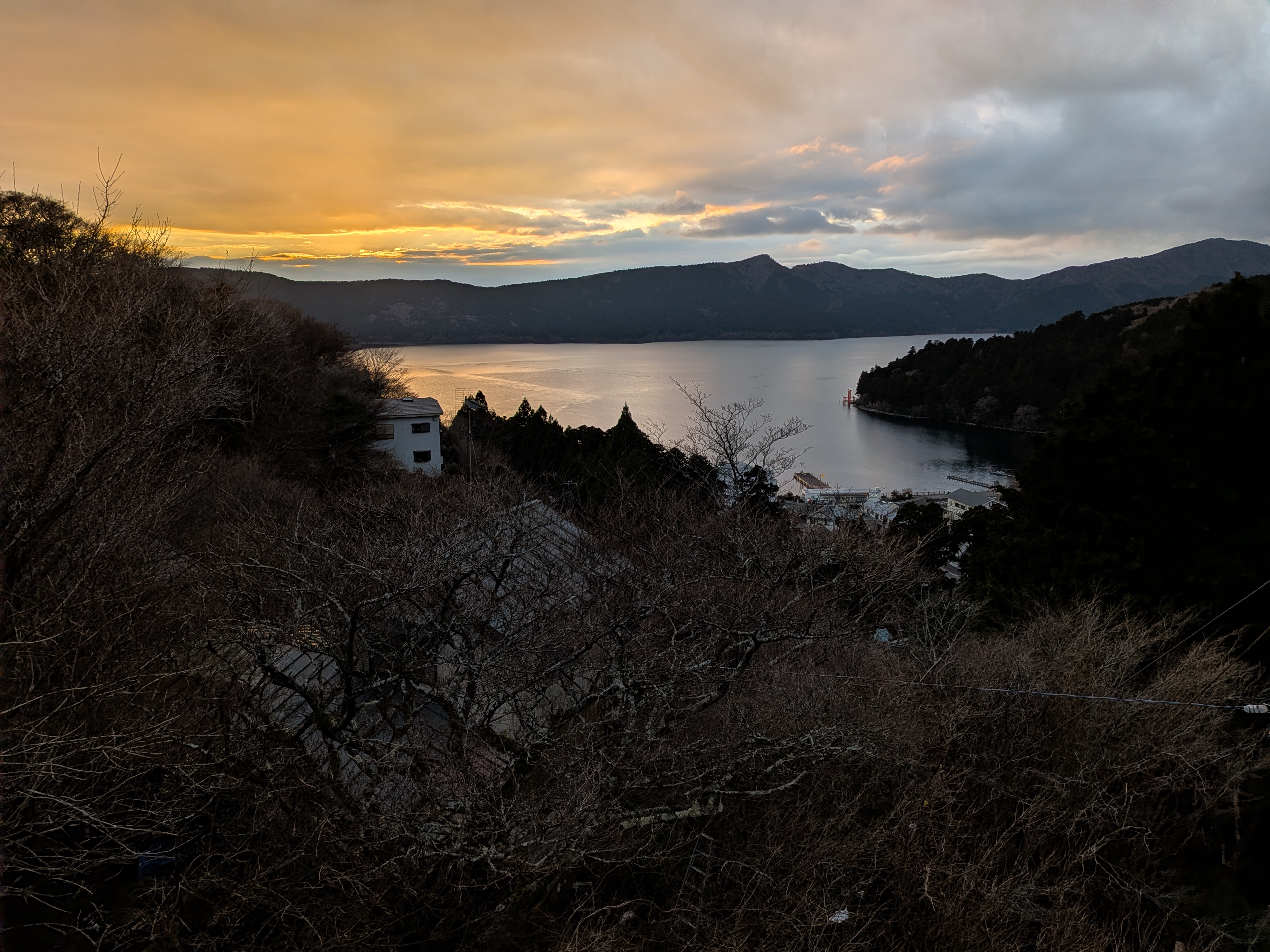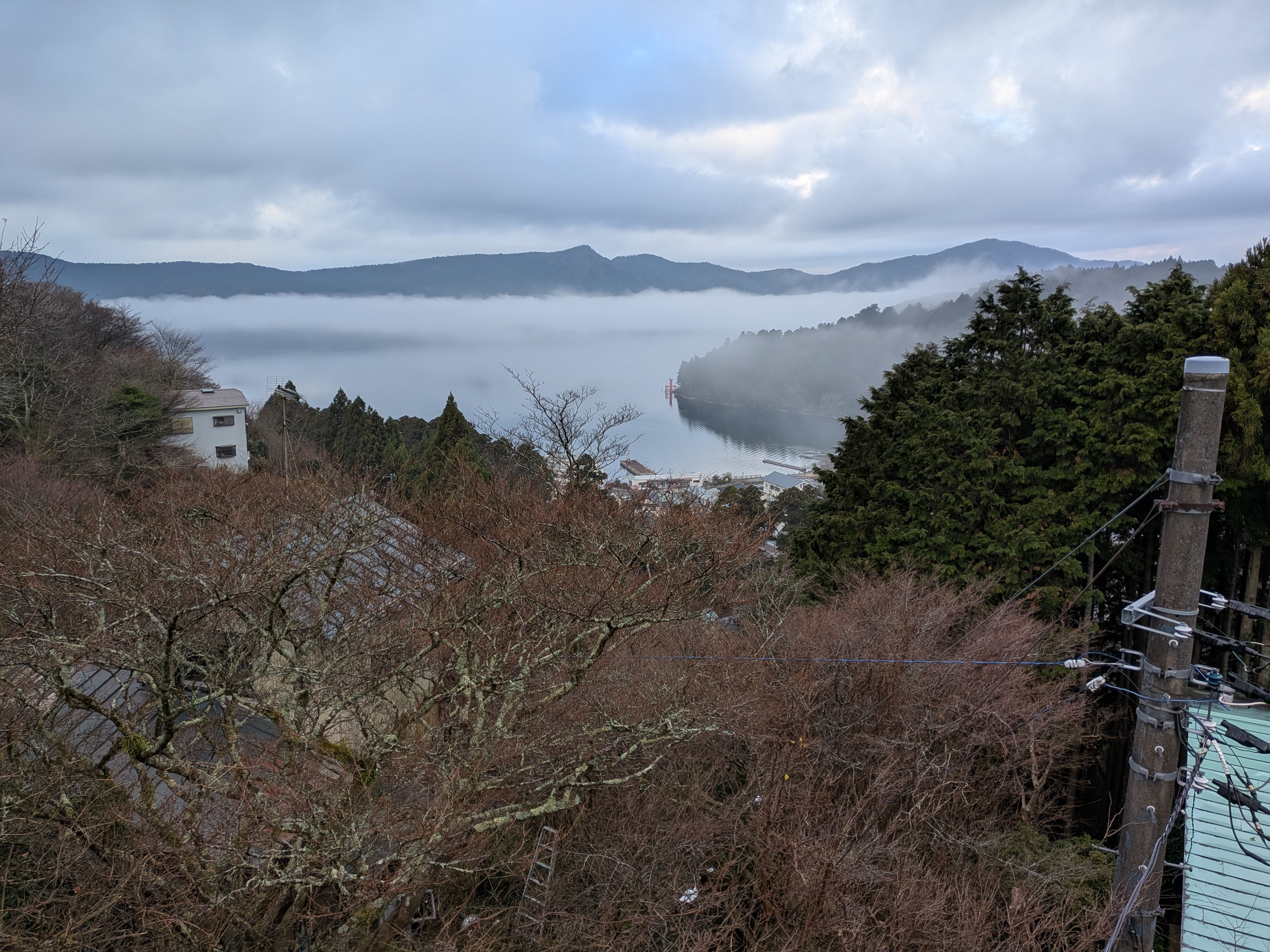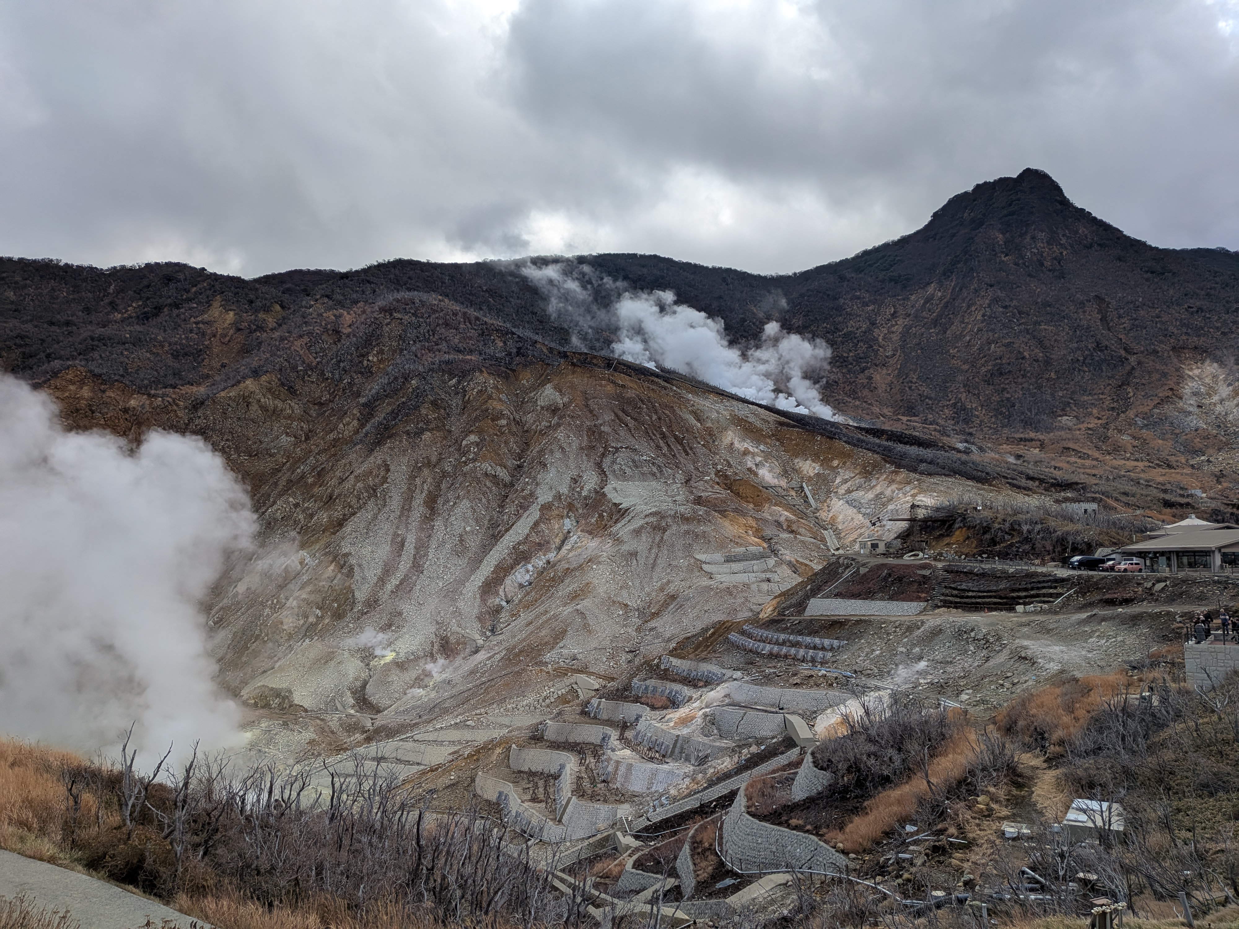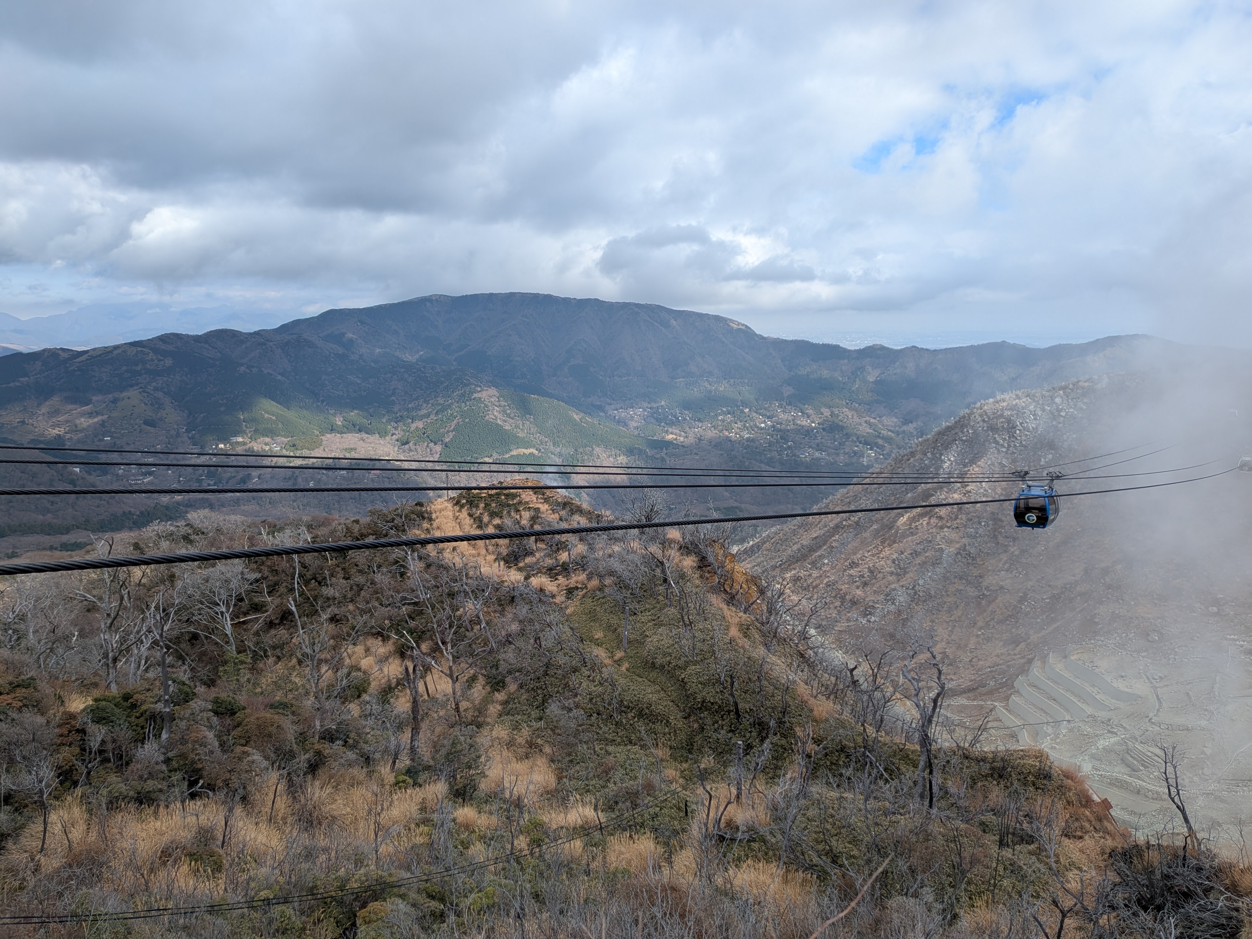 We boarded a pirate ship and sailed across Lake Ashi to a ropeway headed for a geothermal power station in the mountains.