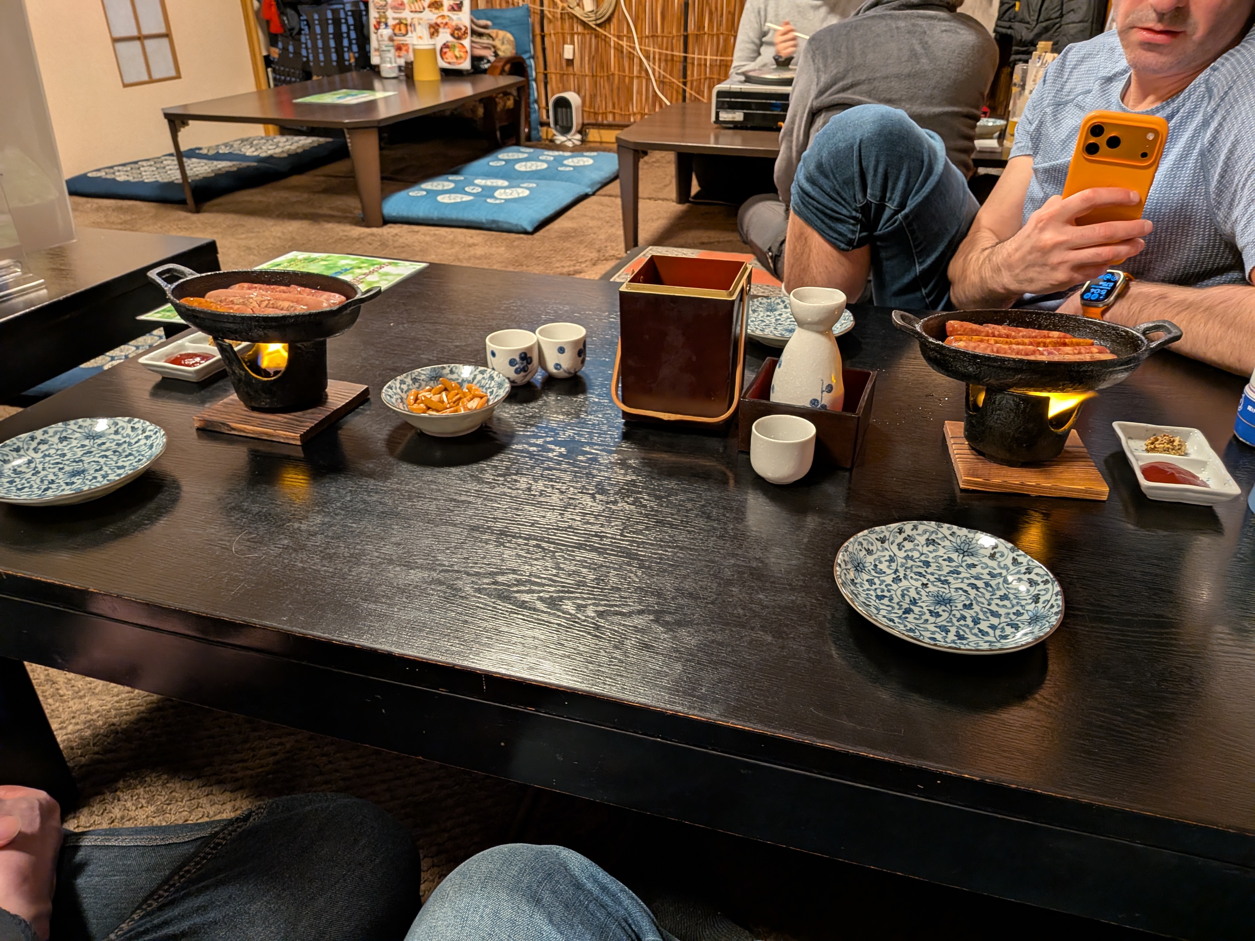 We had a traditional Japanese dinner featuring wagyu beef in a private room,
