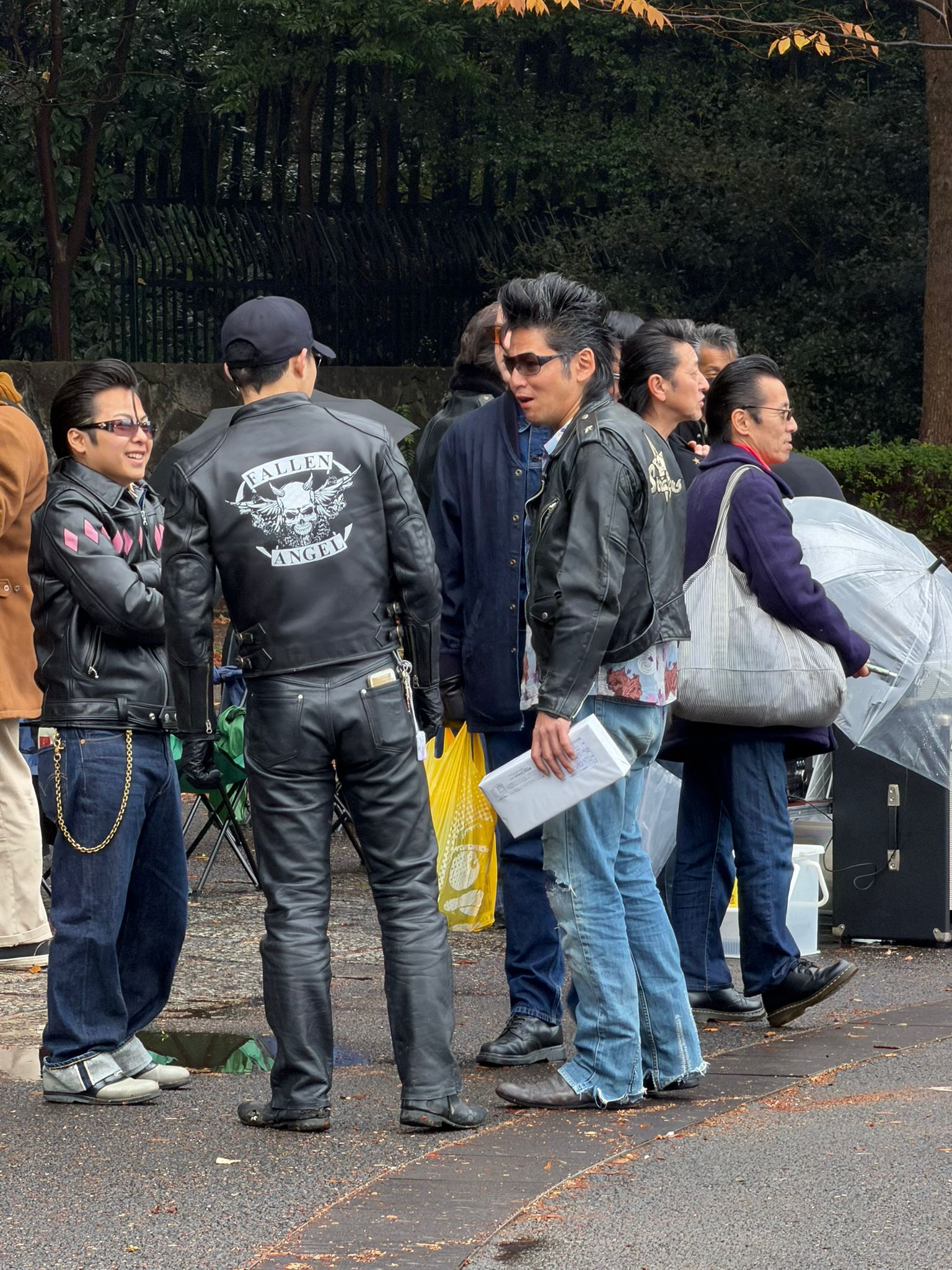 We met up with Kyle in this park where he planned to film the Japanese rockabillies dancing. It was late in the morning and raining, so I don't know if he ended up getting any footage, but he did impart to us some words of wisdom for foreigners traveling in Japan: