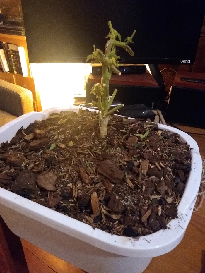 The other plant I potted up to a larger conventional pot, though after a while I ended up putting it in a tub too.