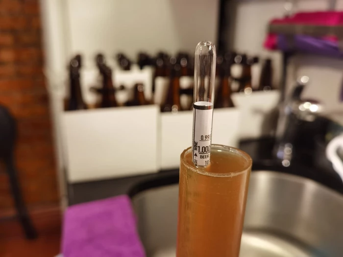 | 4:49 PM | 16 cm | runnings at 8°Bx ≈ 1.0318 SG |
